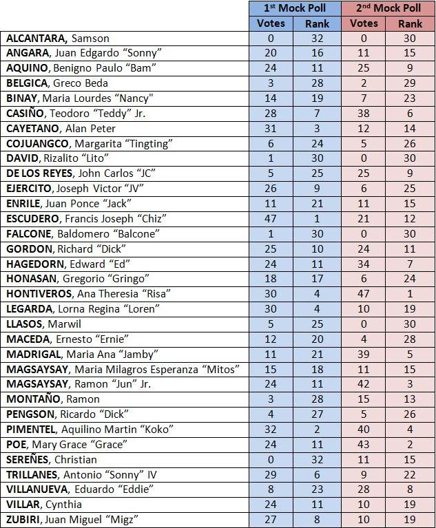 Voters weigh in on the 2013 senatorial candidates using MGG’s Scorecard